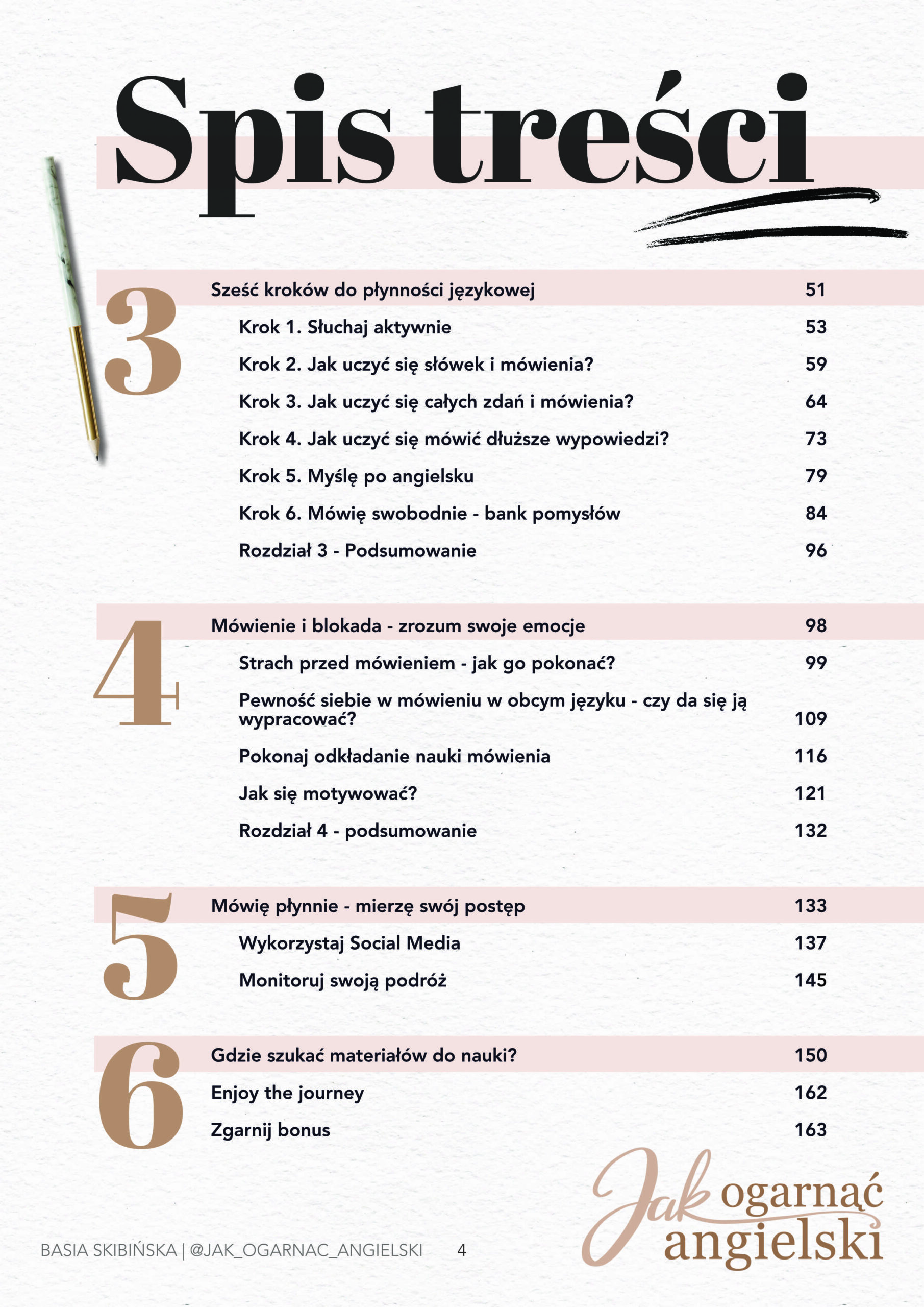 – moją autorską metodę 6 kroków do płynności językowej, dzięki której zaczniesz mówić swobodnie,