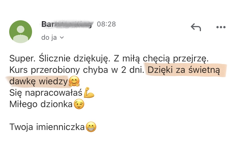 Wystarczy, że po przeczytaniu ebooka wyślesz mi wiadomość jak Ci się podobał na mojego maila basia@jakogarnacangielski.pl  lub w wiadomości na Instagramie.